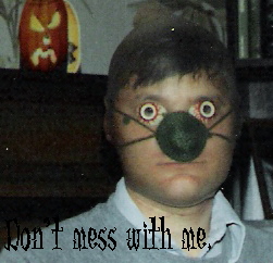 One year I was crocheting a Christmas bell ornament and Wayne decided that the shape would make an awesome nose warmer. He asked me to make one for him and he added that along with a nylon stocking mask to make his costume even better!